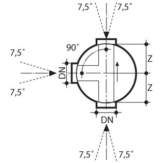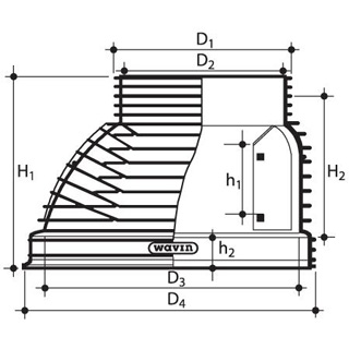 Днище с лотковой частью и регулируемым раструбом Tegra 1000. Пропускная лотковая часть, 90°