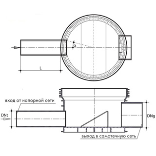 Днище с лотковой частью и нерегулируемым раструбом Tegra 1000. Соединительная лотковая часть (правый и левый приток)