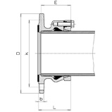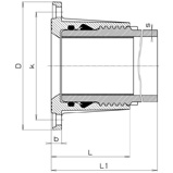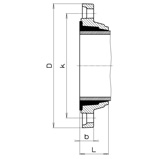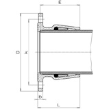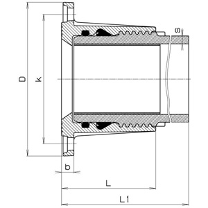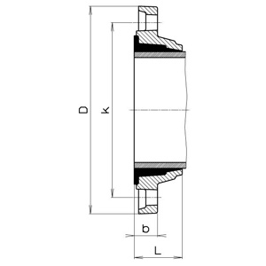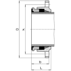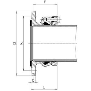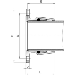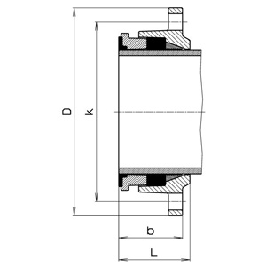 | DNфланца, (мм) | Диаметр трубы, (мм) | D, (мм) | К, (мм) | b, (мм) | Материал | L(собранный), (мм) | Болты | Вес, (кг) | |