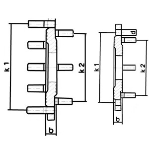 К1 — расстояние между центрами отверстий (шпилек) во фланце со стороны большего диаметра;