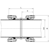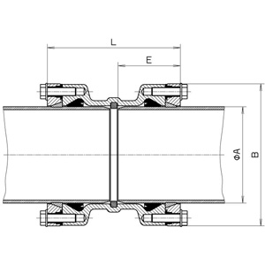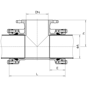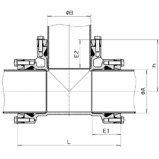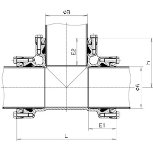 | Диаметр трубы А, (мм) | Диаметр трубы B, (мм) | L, (мм) | E1, (мм) | E2, (мм) | h, (мм) | Вес, (кг) |