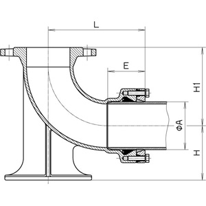 | DN, (мм) | Диаметр трубы А, (мм) | А, (мм) | Е, (мм) | Н, (мм) | Н1, (мм) | Вес, (кг) |
