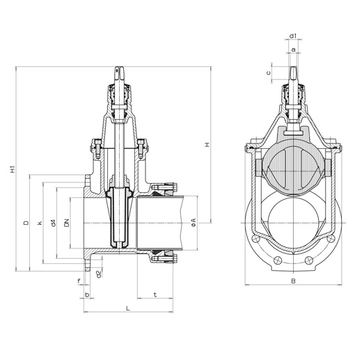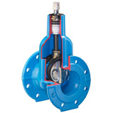 Упруго-запирающаяся клиновая задвижка с фланцем и раструбом для ПЭ (ПЭ 80/100) и ПВХ труб