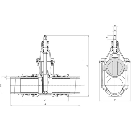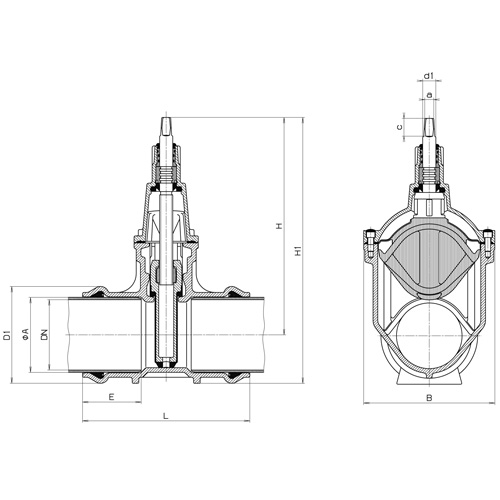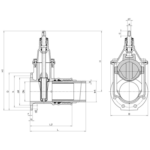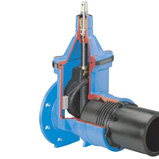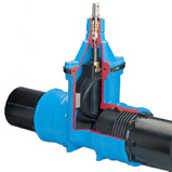 Упруго-запирающаяся клиновая задвижка с раструбами для ПЭ (ПЭ 80/100) и ПВХ труб