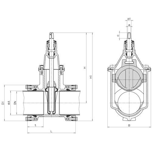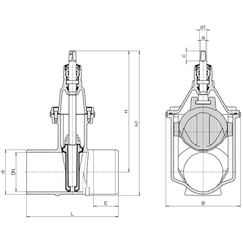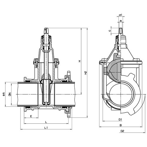 Упруго-запирающаяся клиновая задвижка с раструбами для ПВХ труб