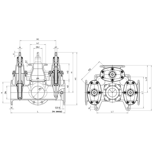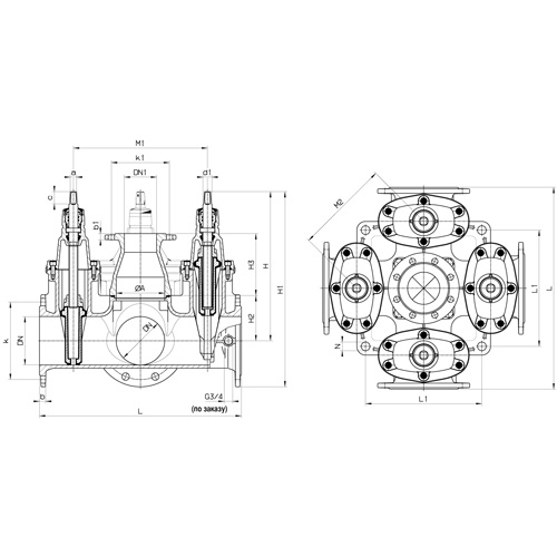 | ØА, (мм) | DN1, (мм) | L, (мм) | L1, (мм) | H, (мм) | H1, (мм) | H2, (мм) | H3, (мм) | b, (мм) | b1, (мм) | k, (мм) | k1, (мм) | М1, (мм) | М2, (мм) | h, (мм) | N, (мм) | а, (мм) | с, (мм) | d1, (мм) | 2 | 3 | |