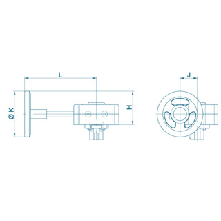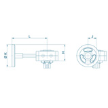 | DN, (мм) | Фиксирующая ручка | H, (мм) | J, (мм) | K, (мм) | L, (мм) | Масса, (кг) | |