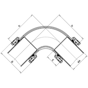 Диаметр трубы А, (мм) | Диаметр трубы B, (мм) | L, (мм) | E1, (мм) | E2, (мм) | h, (мм) | Вес, (кг) |