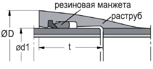d1 | D | t | труба | фасон. части | раструб-фланец | рез. манжета | ||